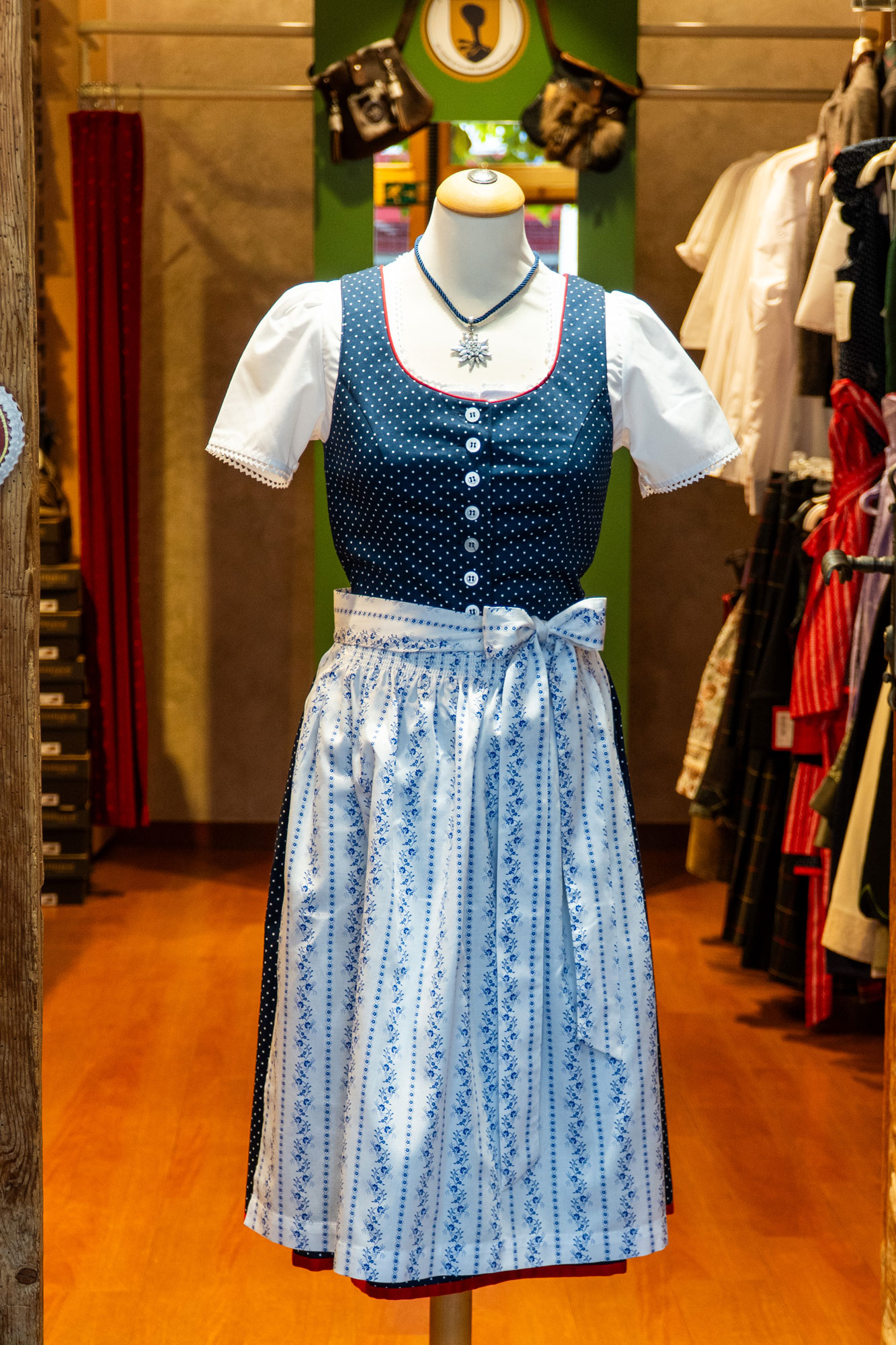 Kärntner Dirndl blau-weiße Schürze